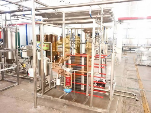 隨著(zhù)啤酒行業(yè)規模不斷擴大,技術(shù)水平不斷提高,啤酒品種不斷增多,原料、能源、運輸等價(jià)格不斷膨脹。應對市場(chǎng),必須節能降耗,降低生產(chǎn)成本。在提高產(chǎn)品質(zhì)量過(guò)程中,啤酒的生物穩定性與巴式滅菌的溫度有很大的關(guān)系。我公司在吸收消化國外先進(jìn)的啤酒殺菌技術(shù)基礎上研制生產(chǎn)了瞬時(shí)殺菌裝置。采用高效的板式換熱器實(shí)現啤酒與熱水的換熱,使啤酒瞬間加溫并經(jīng)過(guò)恒溫殺菌后再經(jīng)過(guò)冷媒介質(zhì)降至原有溫度。通過(guò)瞬間加溫、保溫和降溫的過(guò)程使啤酒完成巴氏殺菌,達到殺菌25pu值,并可使啤酒中的CO2含量和啤酒口味風(fēng)味保持不變。